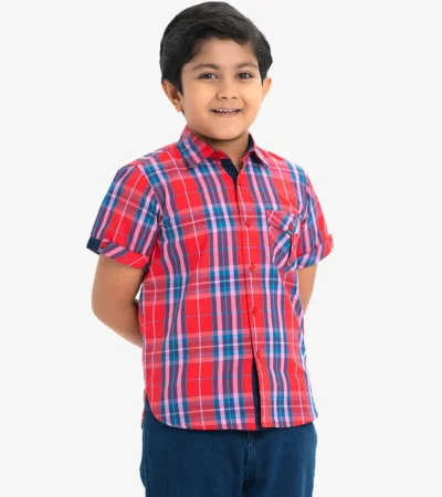 Check Cotton Short Sleeve Casual Shirt for 2-11 Years old Kids