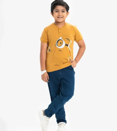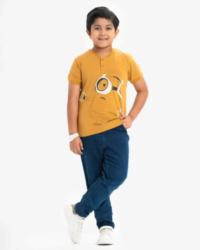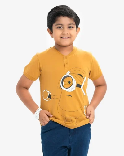 Yellow Cotton Henley T-Shirt for 2-11 Years old Kids